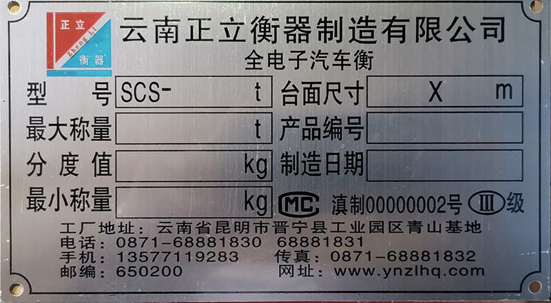 全電子汽車衡銘牌