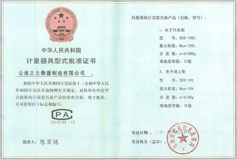 計量器具形式批準證書